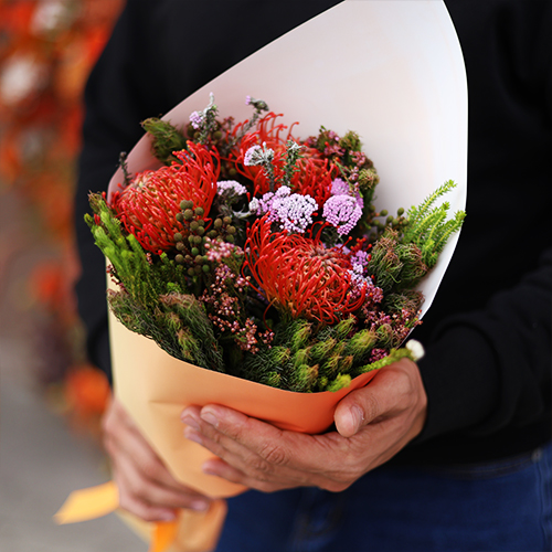 Букет "Капс" из лейко и экзотики