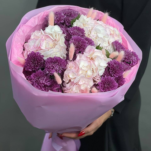 Букет "Фиалка" из гортензий и хризантем